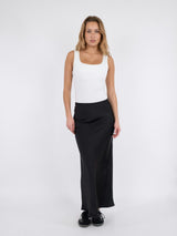 Vicky Heavy Sateen Skirt er en lang nederdel med elastik indvendig i livet.